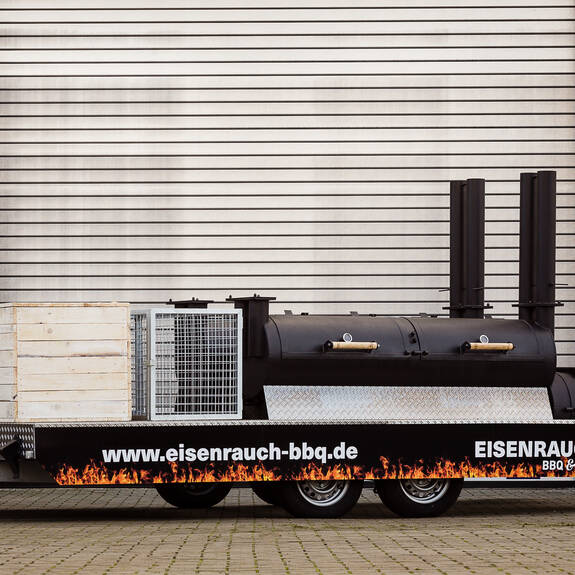 Bei Ihnen steht eine Firmenfeier, ein Betriebsjubiläum oder ein besonderes Familienfest an? Dann kommen wir mit unserem Eisenrauch-Smoker „Twin Barrel 80“ gerne zu Ihnen. Denn unser Smoker im XXL-Format ist nicht nur ein echter Hingucker, sondern mit seinem riesigen Fassungsvermögen wird bestimmt jeder Gast richtig satt. Ihr Vorteil: Beide Seiten des „Riesensmokers“ lassen sich unabhängig voneinander nutzen und mit unterschiedlichen Speisen befüllen. Man kann unseren größten Smoker mieten – auch gerne mit unserem hauseigenen Catering- Service-Team. Je nachdem, ob Sie gerne selbst „smoken“ oder sich „einfach nur“ an unserem Power-Smoker kulinarisch verwöhnen lassen wollen.