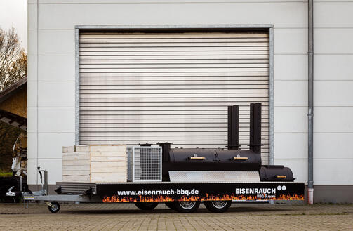 Gedacht ist der Trailer für Gastronomie-Kunden die etwas Individuelles wollen. „Die Ausstattung kann nach eigenen Wünschen gestaltet werden. Im Basis-Paket sind die hochwertigen Smoker, eine Gitterbox für Holz und ein Stauraum in Form einer Holz-Box enthalten. Hier kann die Form und Größe natürlich geändert werden. Weiterhin ist an den Trailer direkt ein Schirmständer verbaut, der den richtigen Halt und die korrekte Positionierung eines Gastro-Schirmes vorgibt.