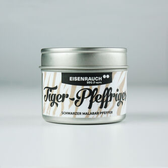 Gewürzmischung mit Inhalt: Tigerpfeffer schwarz ,Szechuanpfeffer, Lemonmyrthe fein geschrotet.